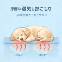 それは、ワンちゃんの体温と床の温度差によって「結露」のような湿気が発生するからです。