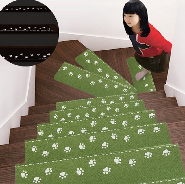 【階段の安全対策に最適!滑り止めマット蛍光】 愛犬やお子様の安全を守るための階段マットが新登場!滑り止め性能に優れ、安心して使用できるマットです♪ 15枚1セットのお値段です。1枚300円 縦21センチ×幅70cm 階段は、特に滑りやすい場所であり、愛犬や小さなお子様が移動する際に思わぬ事故を引き起こすことがあります。このマットを使用することで、ケガのリスクを大幅に軽減できます。さらに、折り曲げ加工が施されており、階段の形状にしっかりフィット!カーペット全体が滑りにくく設計されています。 夜間には蛍光素材が優しく光り、暗い場所でも足元を明るく照らします。これにより、階段を使う際の安心感が増し、視認性も向上します。 お手入れもラクラク!丸洗い可能なので、いつでも清潔を保つことができます。ペットの毛や汚れもすぐに落とせて、いつでも快適な環境をお届けします。 大切な家族のために、ぜひこの階段マットを活用してください!安全対策を万全にし、安心して毎日をお過ごしください^^