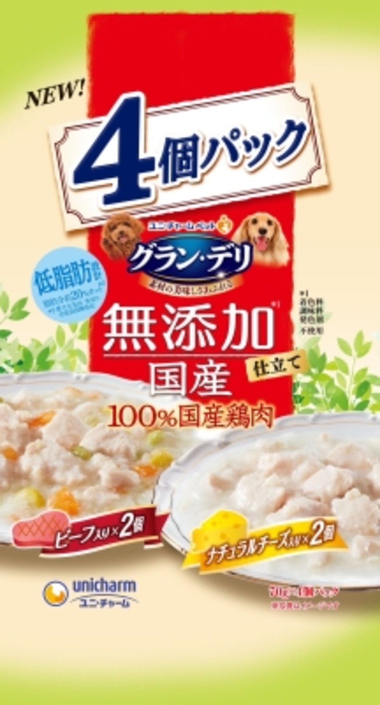 商品の特徴:メーカー:ユニ・チャームペットケア・着色料・調味料・発色剤を使用せずに、美味しく調理しました。・新鮮な国産鶏肉を生肉のまま調理した美味しい鶏ささみ入りのレトルトパウチです。・ビーフ入りとナチュラルチーズ入りがそれぞれ2個ずつ入った嬉しいアソート4個パック