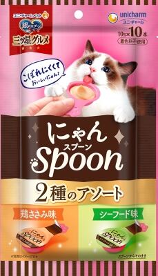 商品の特徴:メーカー:ユニ・チャームペットケア・こぼしにくく、ねこちゃんが食べやすいスプーン容器 ・お魚をすりつぶしたとろ〜りウェットタイプのおやつ ・10gで食べきりサイズ ・無着色・ひと袋に2種類の味が詰まったアソートタイプ