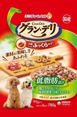 ・美味しさはそのままに、 脂肪分を約25%カットした低脂肪タイプ(グラン・デリふっくら仕立て全成長段階用比)
