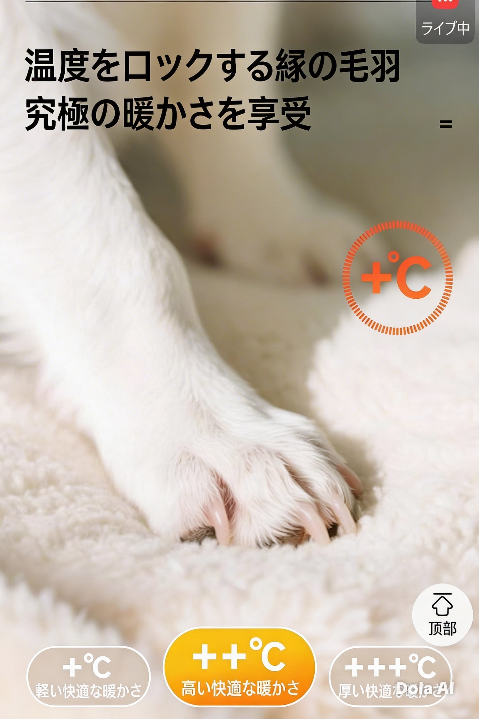 ふんわり柔らかい素材がペットの体を優しく包み込み、
