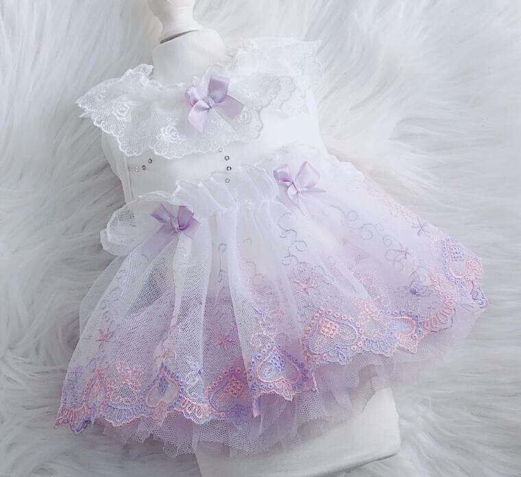 レッドカーペットに登場するような華やかなドレスがペット服として登場しました。秋冬の新作小型犬服は、パープルとピンクの2色展開で、5つのサイズから選べます。