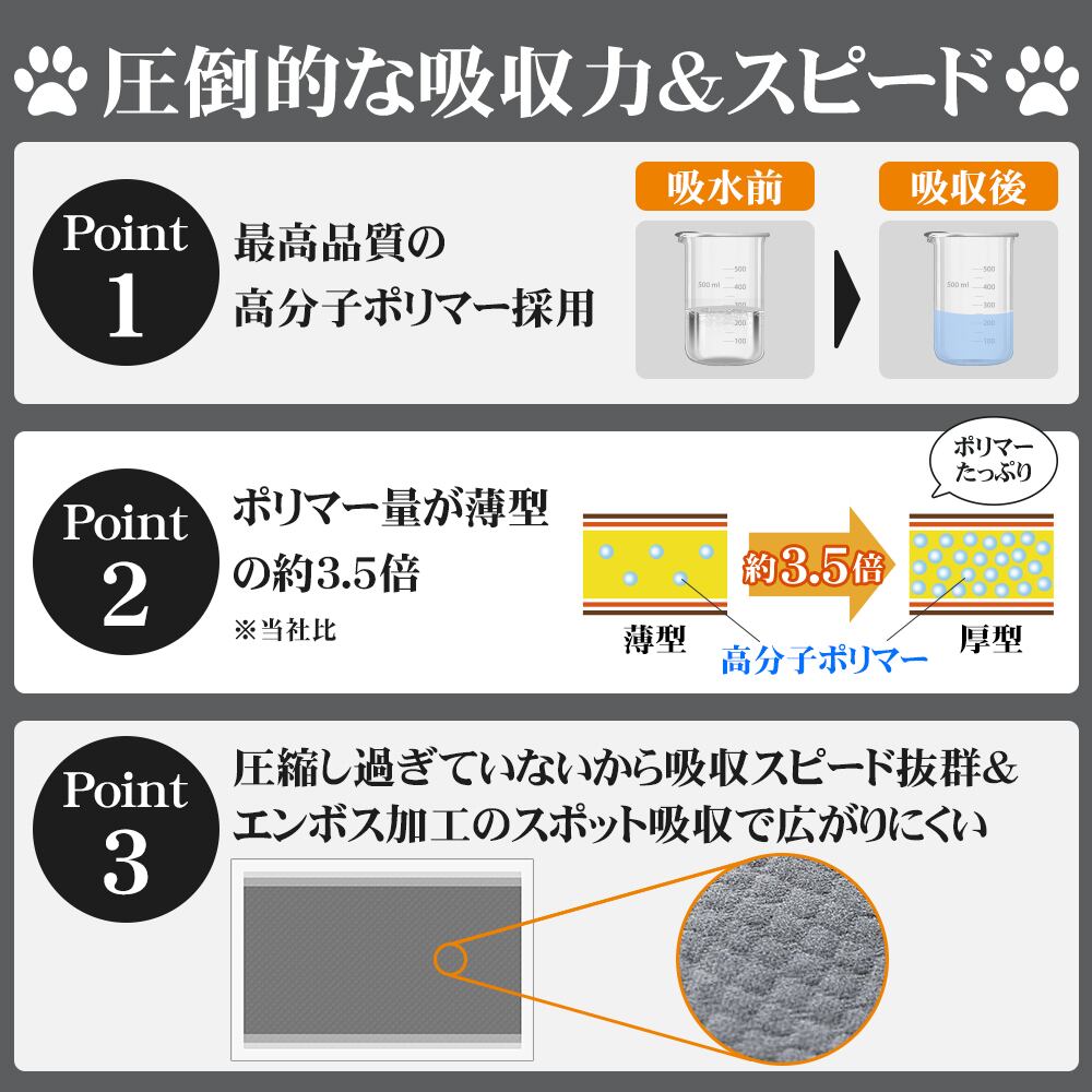 ●大容量の高分子吸収ポリマーがシーツの全面に散布